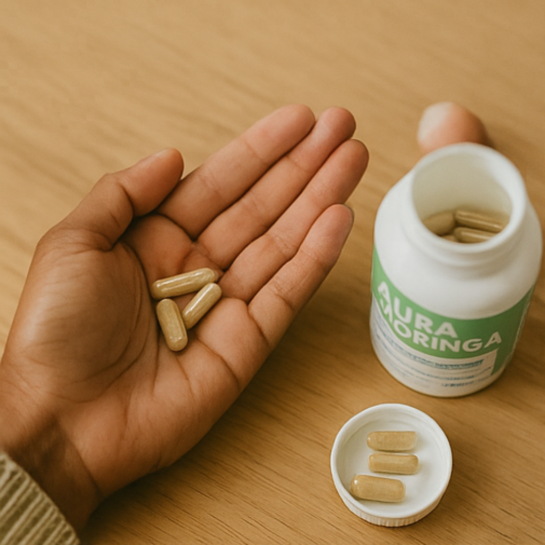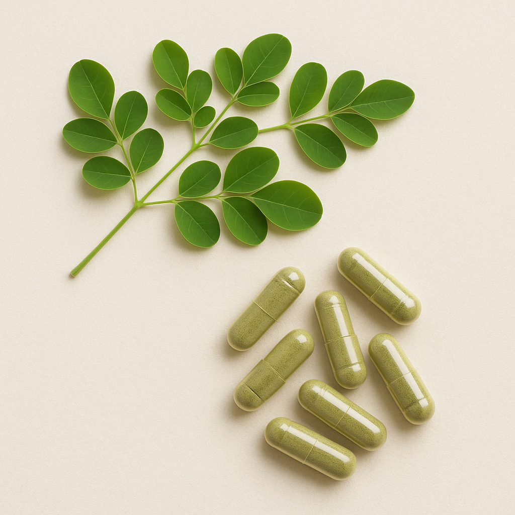 Cada cápsula contiene 6000 mg equivalentes de hoja de moringa pura, una fuente natural de antioxidantes, adaptógenos y micronutrientes que ayudan al cuerpo a regular el estrés y restaurar el equilibrio hormonal.